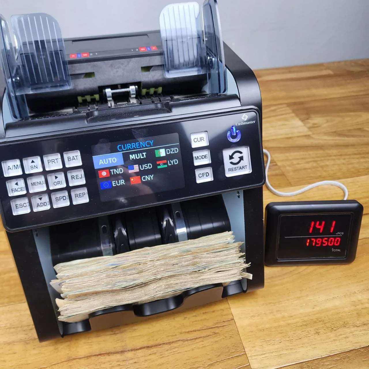جهازنا المتطور لا يكتفي بعد و فرز الاوراق النقدية لاكن لا يدعم فقط الدينار الجزائري ، لاكن يدعم مجموعة كبيرة من العملات الاجنبية بما فيها (الدولار الامريكي، اليورو، الين الصيني، الدينار الليبي، الدينار التونسي... )