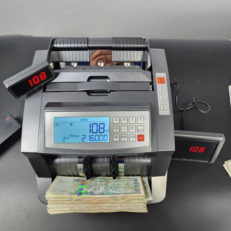 اَلة عد النقود وكشف الاوراق المزورة المزورة محمولة